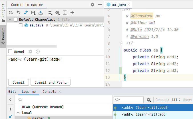 感觉这里IDEA自动把文件使用了 git add .了 文件使用git add .会把文件放入暂存区