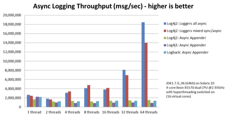 其中,Loggers all async是基于LMAX Disruptor实现的。可见Log4j2的异步日志性能是最棒的。